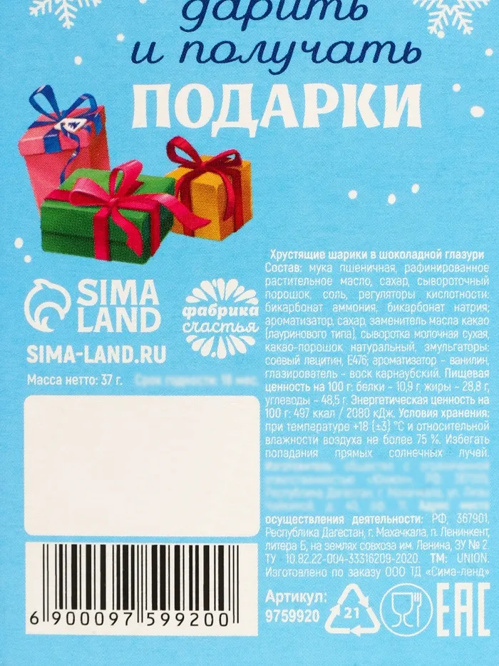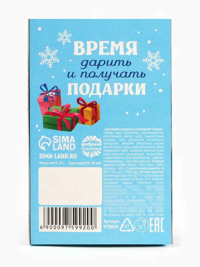 Шоколадные шарики «Подарок» в коробке, 37 г. — Характеристики