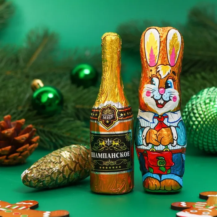 Шоколадный набор "Кролик, Шишка, Шампанское", 98 г