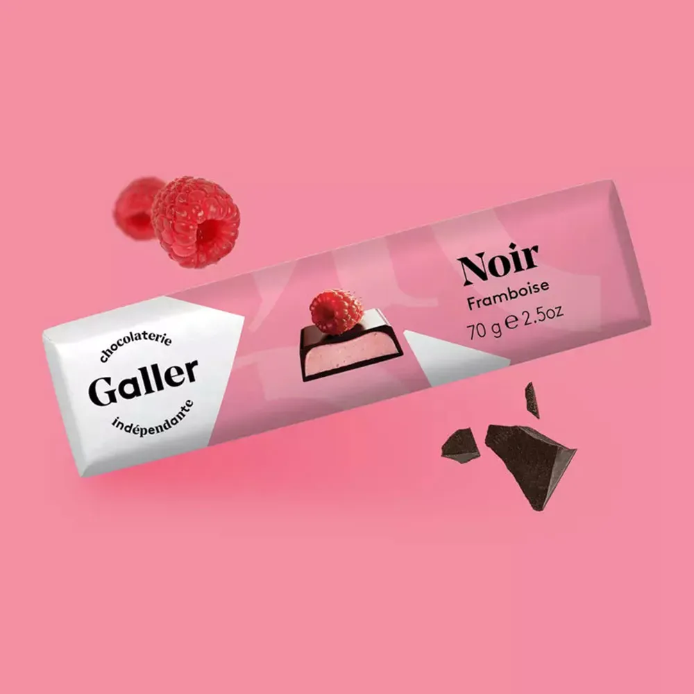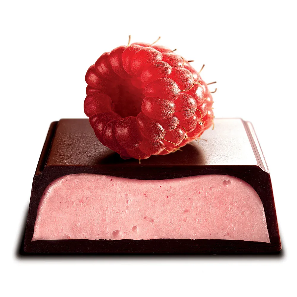 Шоколадный батончик с насыщенным вкусом тёмного шоколада и ароматом малины.