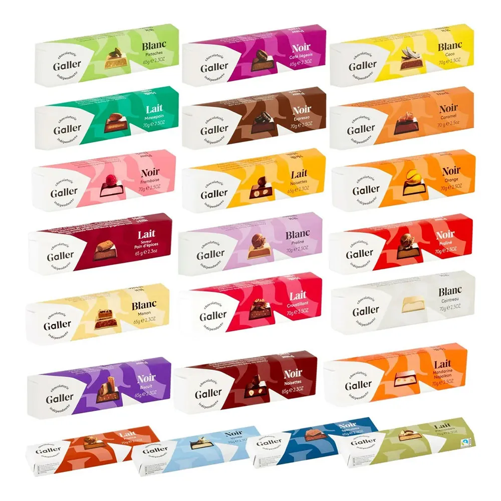 Ингредиенты: шоколад (49%): сахар, цельный молочный порошок, какао-масло, обезжиренный молочный порошок, эмульгатор; соевый лецитин, натуральный ванильный ароматизатор. Какао: мин. 23%. Начинка (51%): сахар, растительный жир (масло ши, кокосовое масло, подсолнечное масло), лесной орех 20%, сывороточный порошок (молоко), декстроза, обезжиренный какао-порошок, эмульгатор: соевый лецитин, натуральный ванильный вкус. Может содержать: другие орехи, яйца и злаки, содержащие глютен.