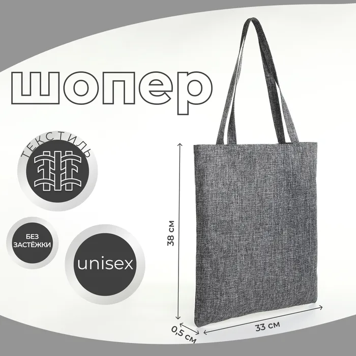 Шопер без застёжки, из текстиля, цвет серый — Характеристики