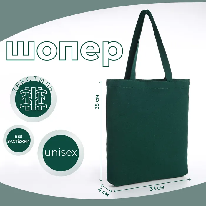 Шопер без застёжки, из текстиля, цвет зелёный — Характеристики
