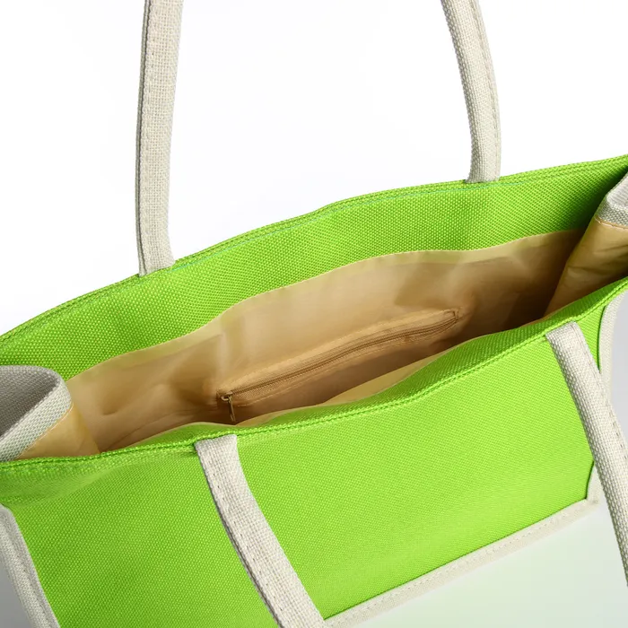 Шопер без застёжки, цвет молочный/салатовый — Характеристики