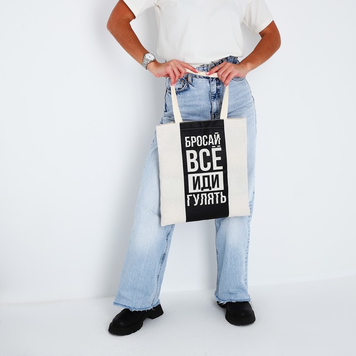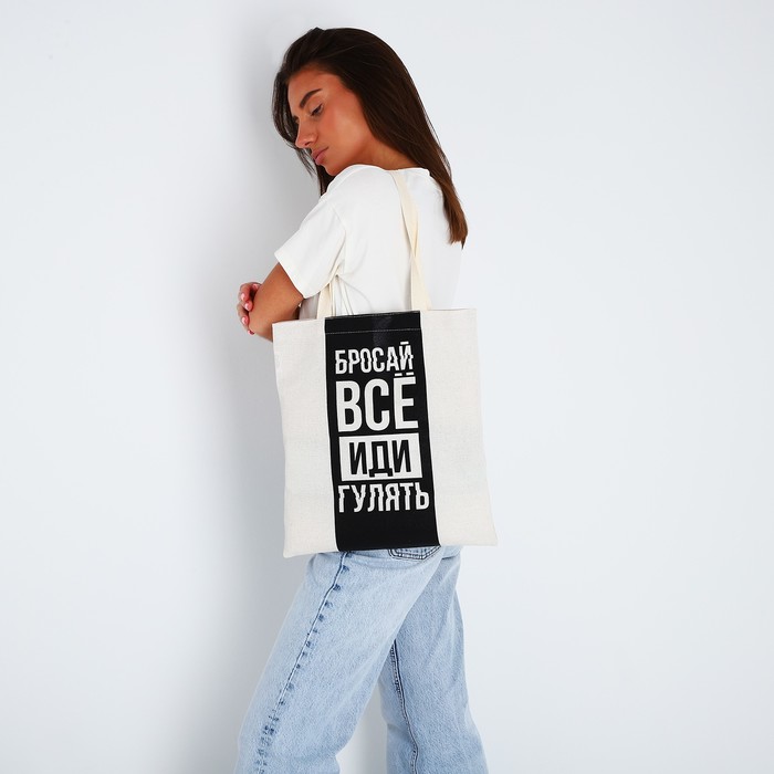 Шопер «Бросай все» 35 х 0,5 х 40, отд без молнии, без подклада, бежевый — Характеристики