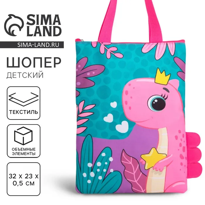 Шопер детский для девочки «Динозаврик» на молнии, 32×23 см — Характеристики