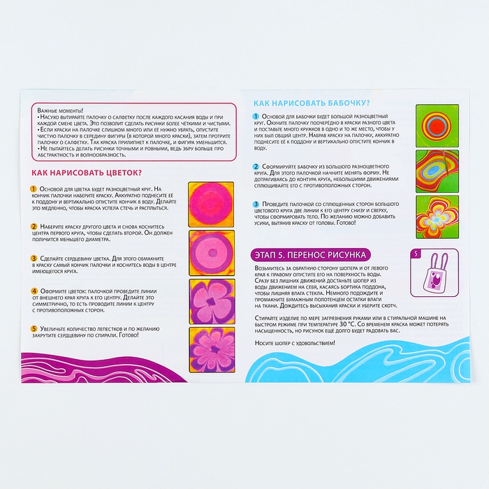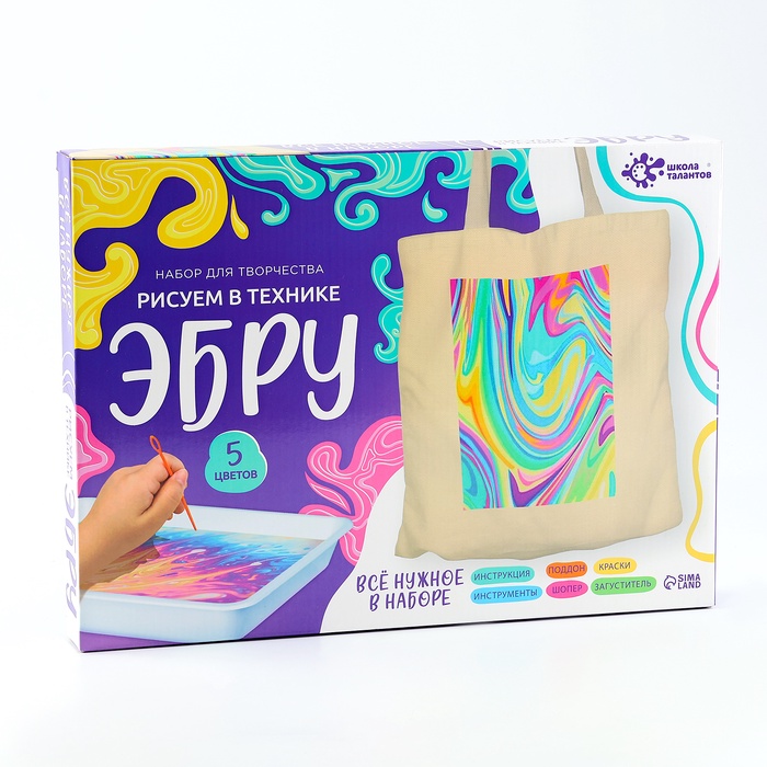 Набор для творчества «Эбру на ткани: создаём стильный шопер» — это уникальная возможность проявить креативность и создать индивидуальный аксессуар своими руками. Техника Эбру, также известная как искусство рисования на воде, подходит для создания неповторимых узоров, которые затем переносятся на ткань.