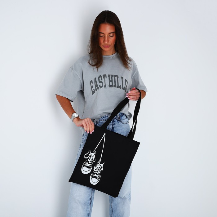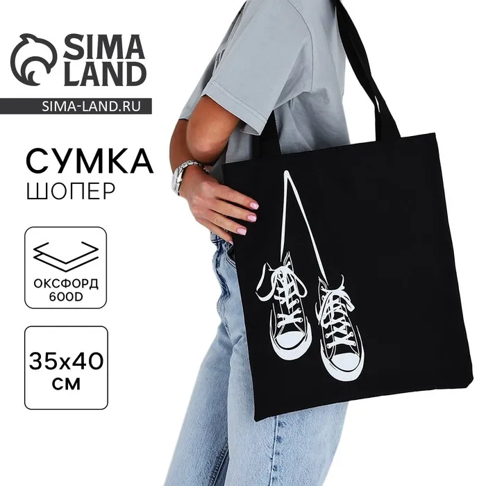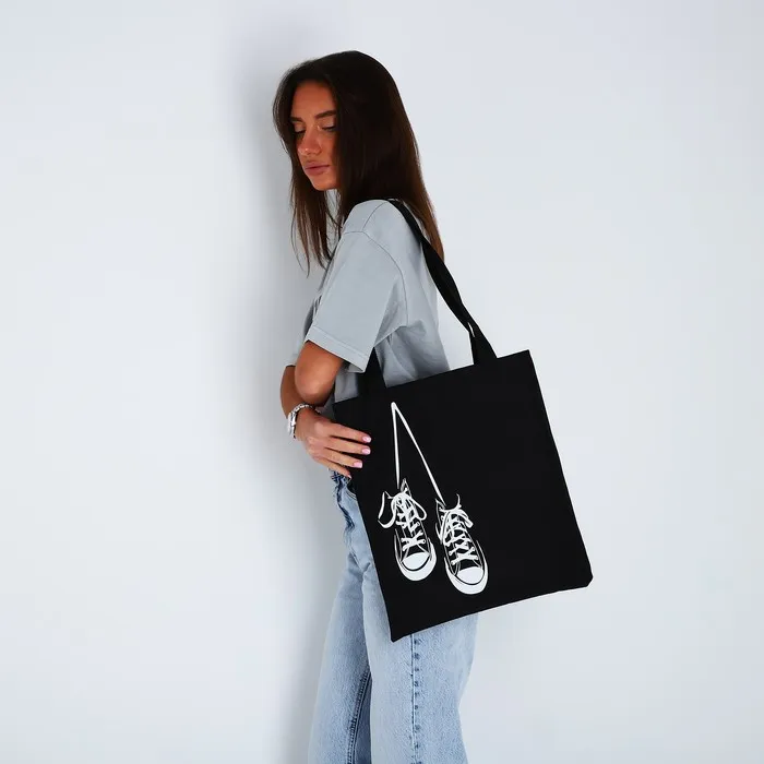 Шопер «Кеды», 35х0.5х40 см, отдел без молнии, без подклада, чёрный — Характеристики
