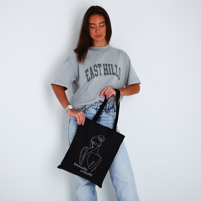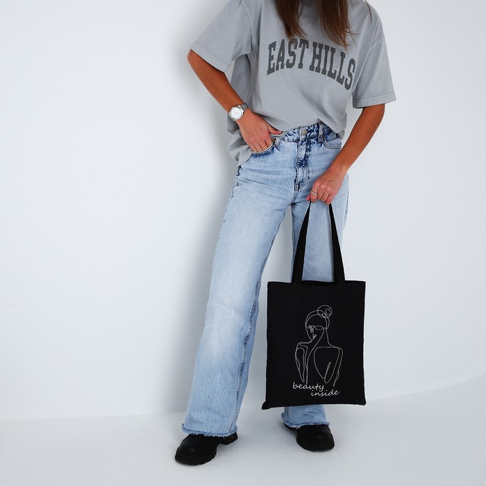 Шопер «Красота внутри» 35 х 0,5 х 40, отдел без молнии, без подклада, чёрный — Характеристики