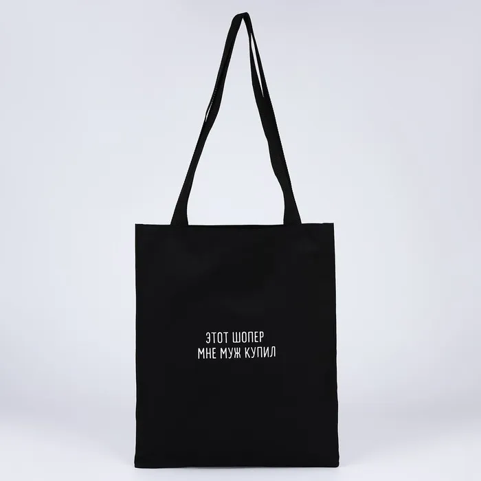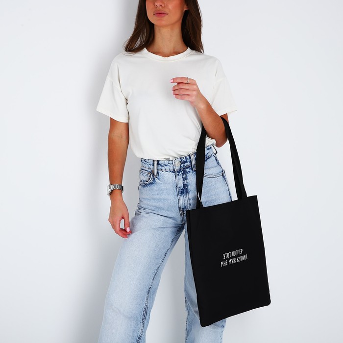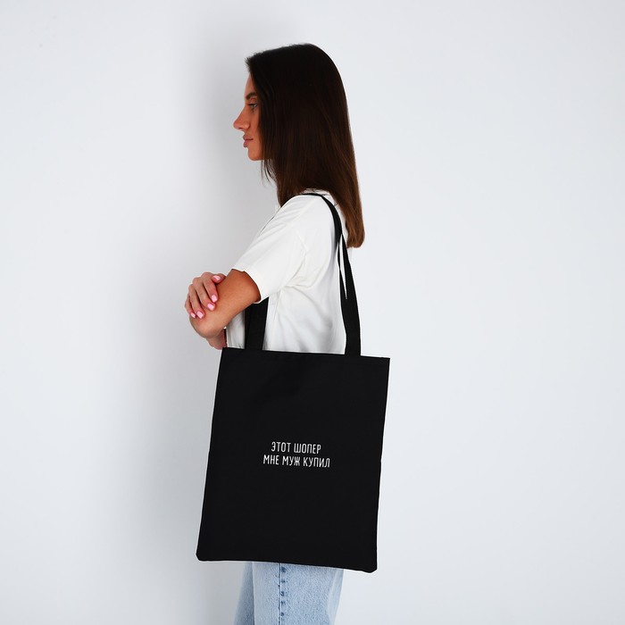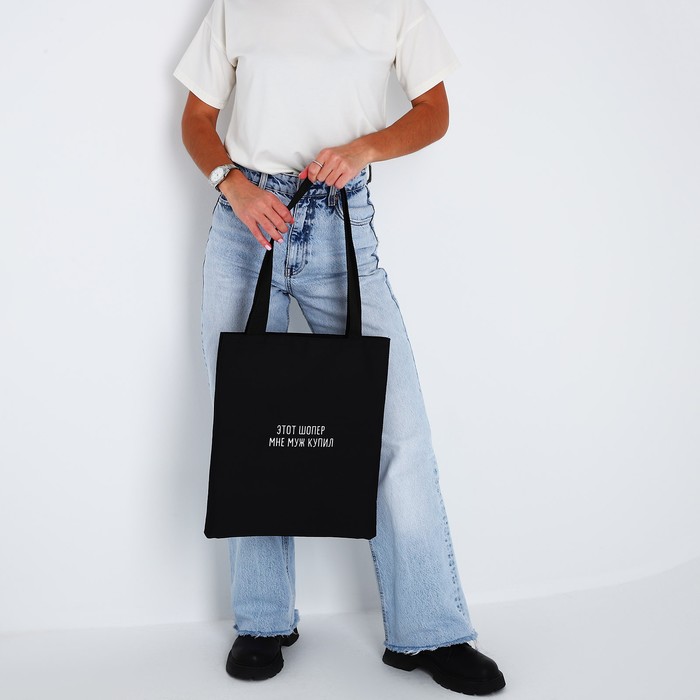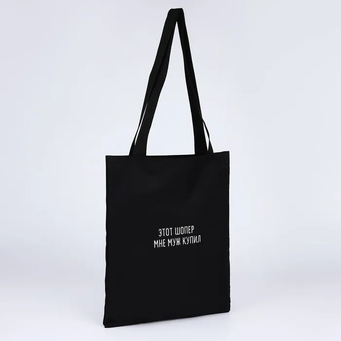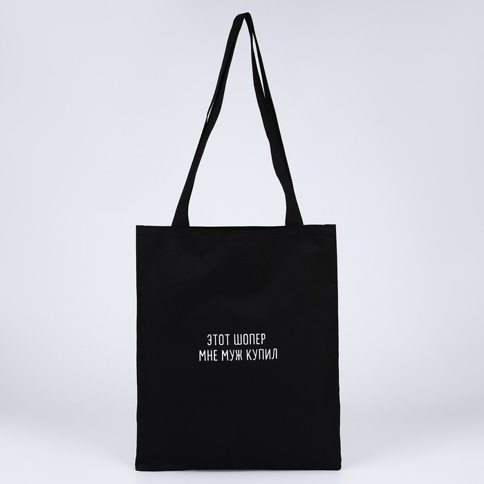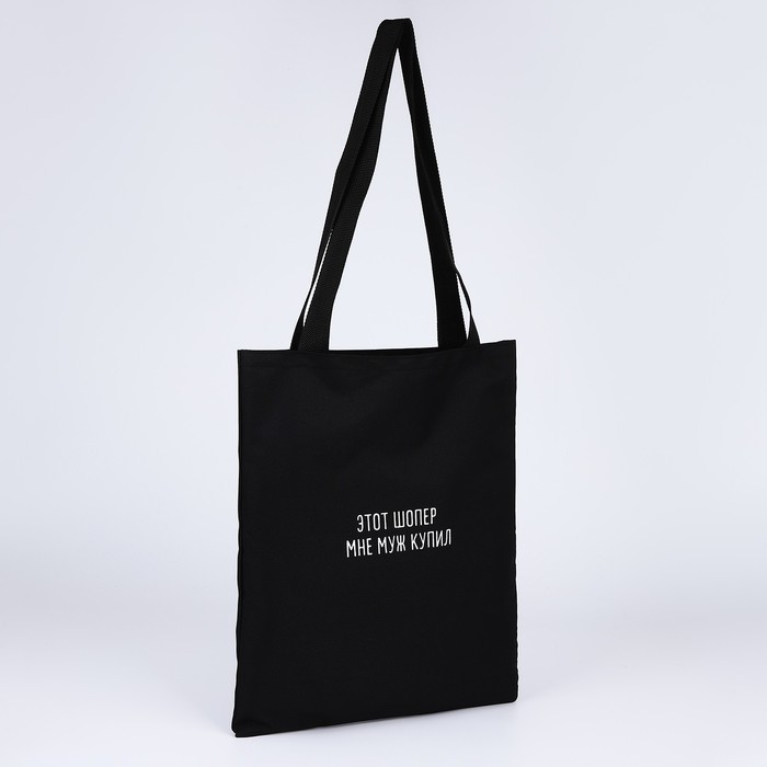 Шопер «Муж купил», 35х0.5х40 см, отдел без молнии, без подклада, чёрный — Характеристики