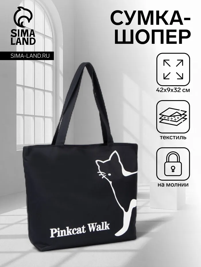 Шопер на молнии с подкладкой, цвет чёрный — Характеристики