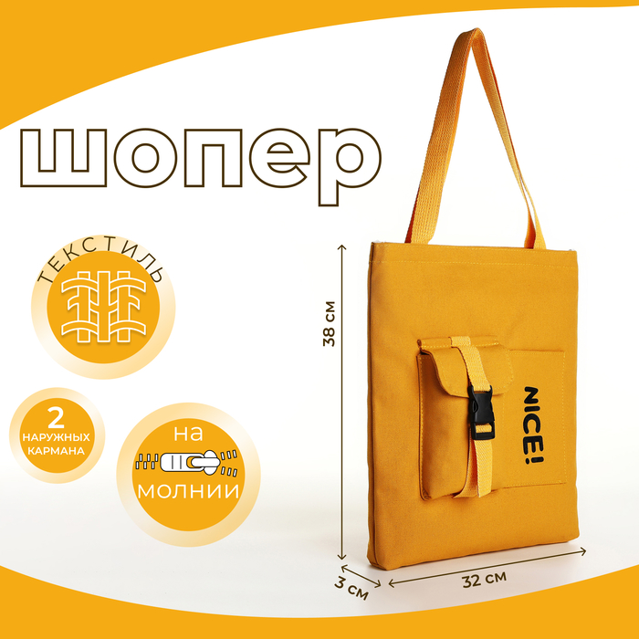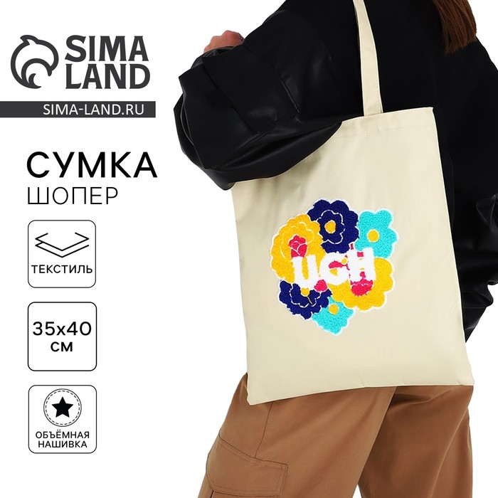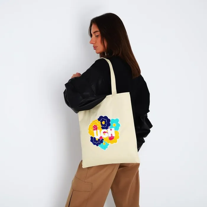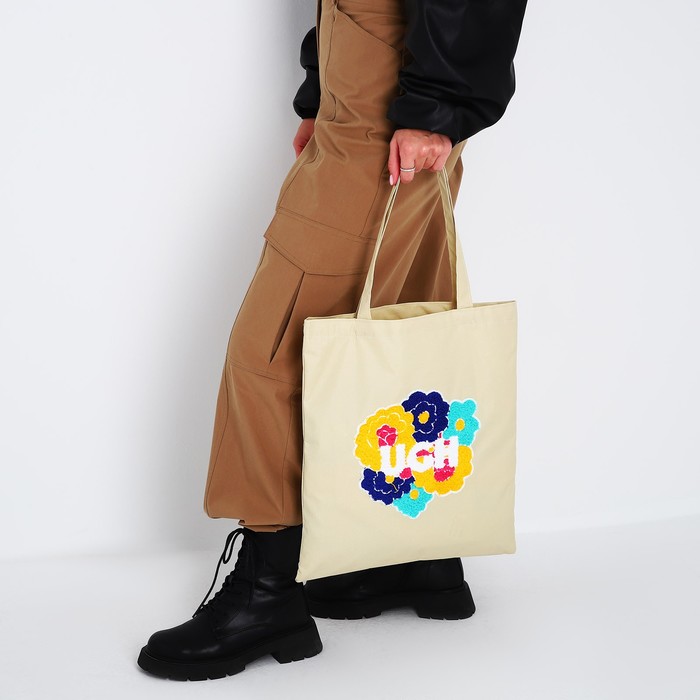 Шопер текстильный с вышивкой UGH, 40×35 см, бежевый — Характеристики
