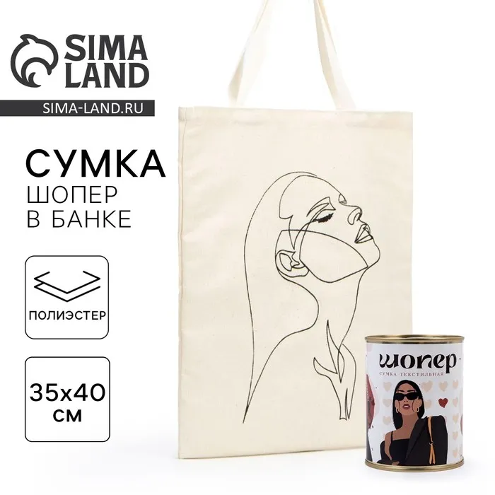 Шопер в банке «Стиль», без подклада, без молнии, 35 х 40 х 0.5 см, бежевый — Характеристики