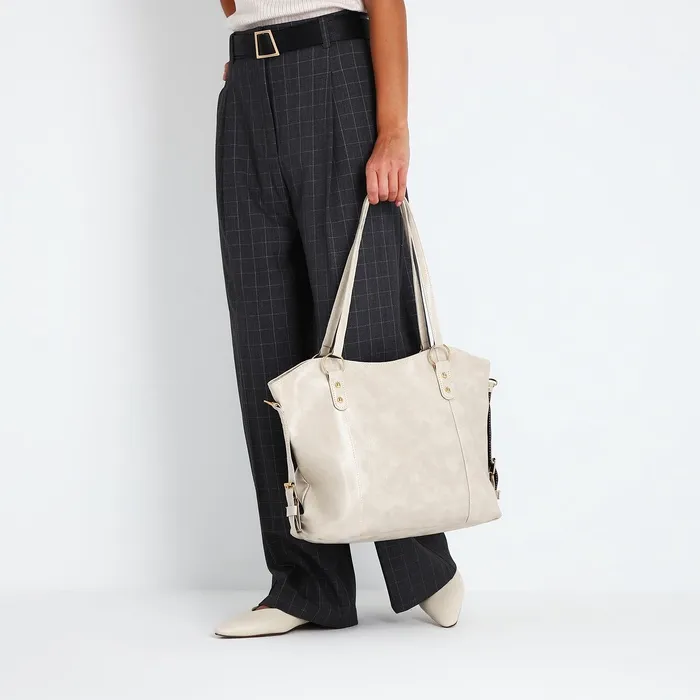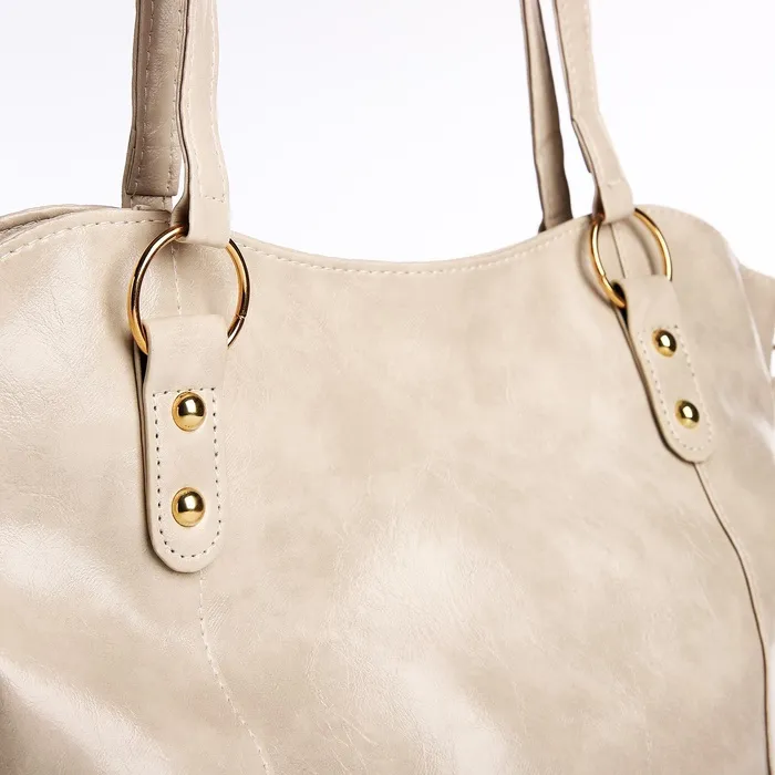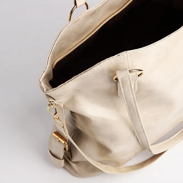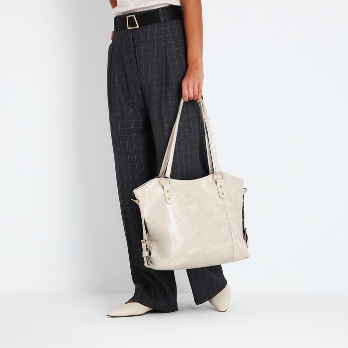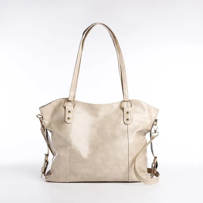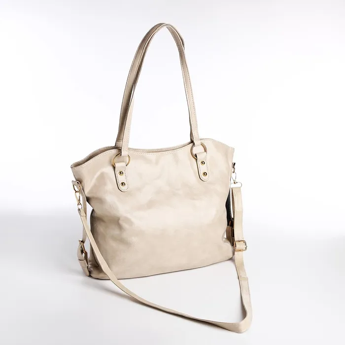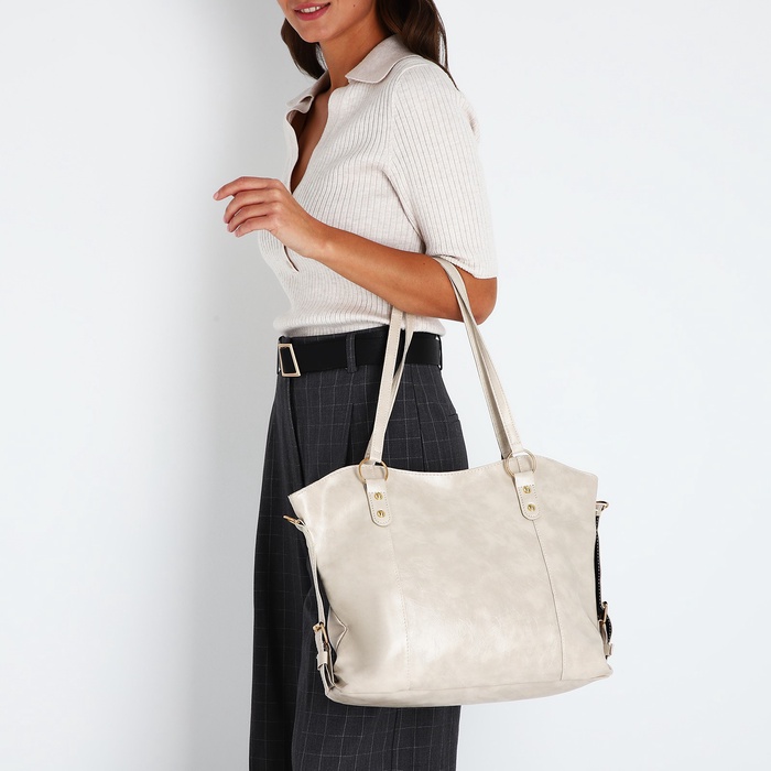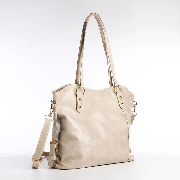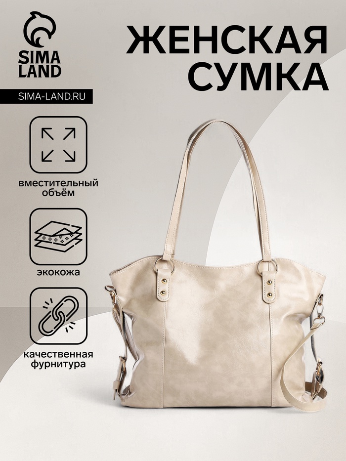 Шоппер женский, на длинном ремне, искусственная кожа, большой размер, бежевый — Характеристики