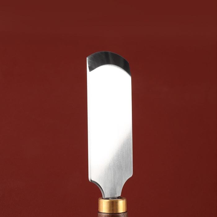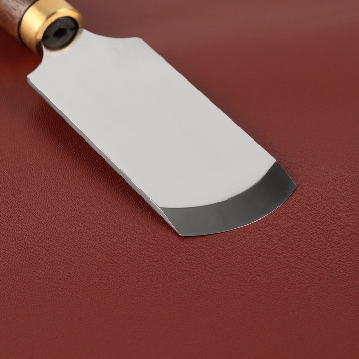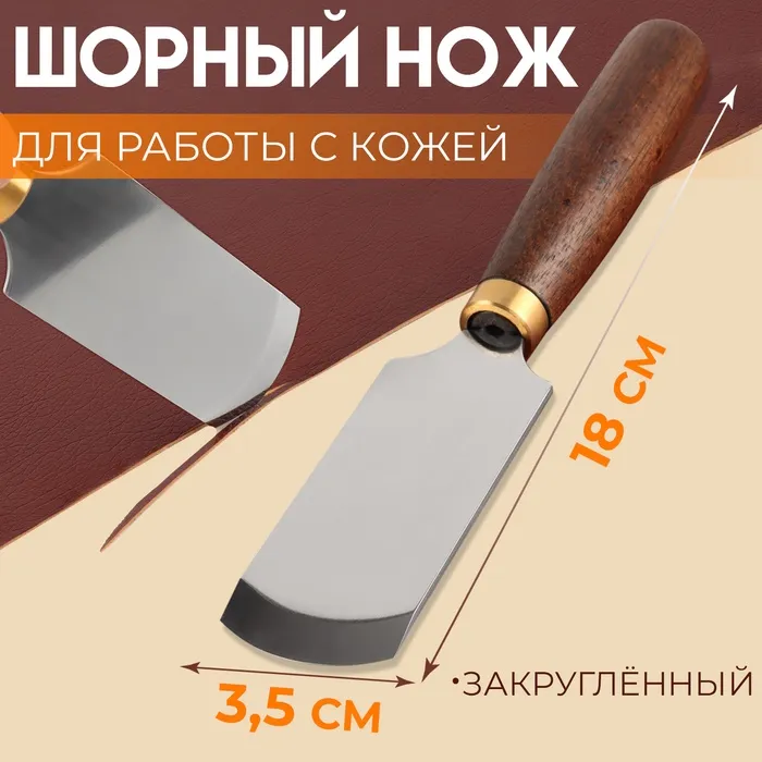 Шорный нож с закруглённым лезвием — это незаменимый инструмент для мастеров, работающих с кожей. Используется для прямолинейного реза в обе стороны и для аккуратного торцевания заготовок из натуральной кожи.
