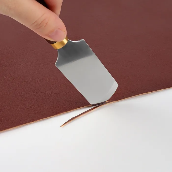 Также такой нож может применяться для шерфования кожи и в качестве раскройного ножа.
