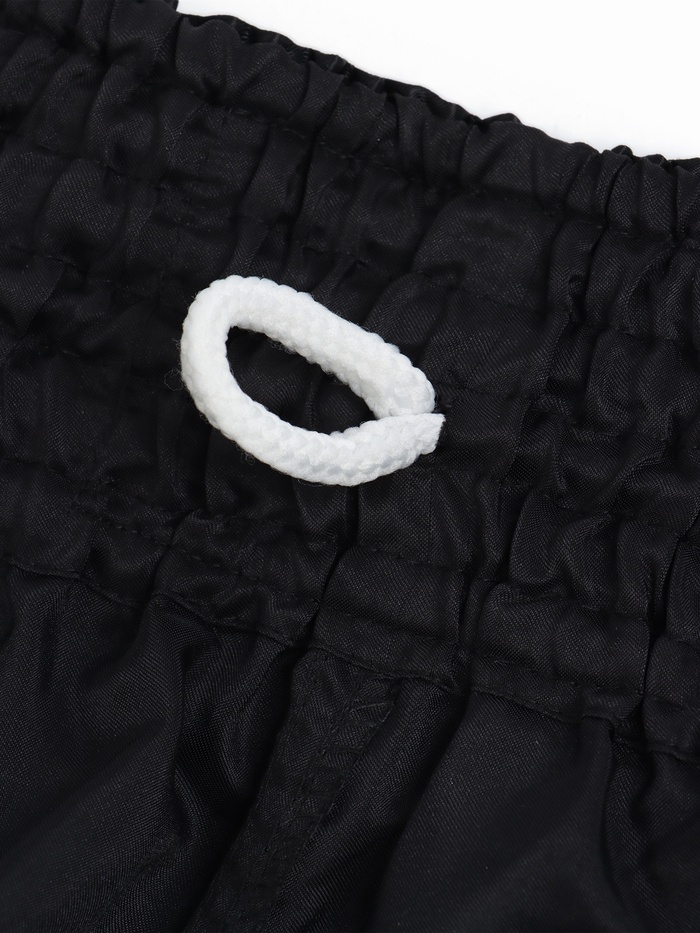 Шорты изготовлены из полиэстера. Ткань обладает абсорбирующими свойствами, эффективно отводит влагу от тела во время тренировки и быстро сохнет. Шорты имеют свободный крой и эластичный пояс, который максимально плотно прилегает к телу.