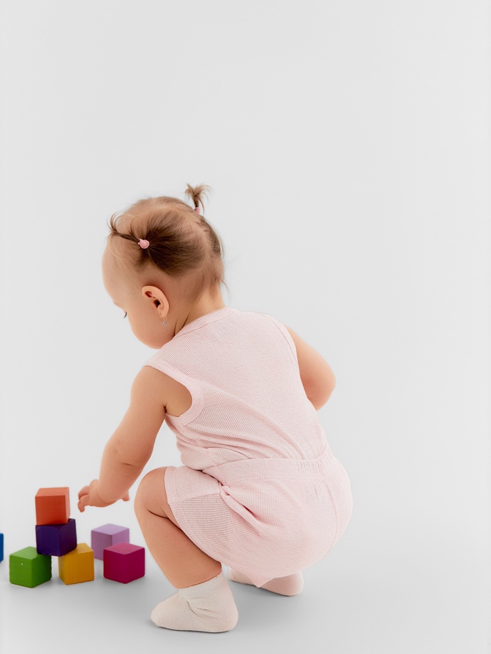 - Нежный розовый цвет добавляет образу малыша трогательности и уюта.