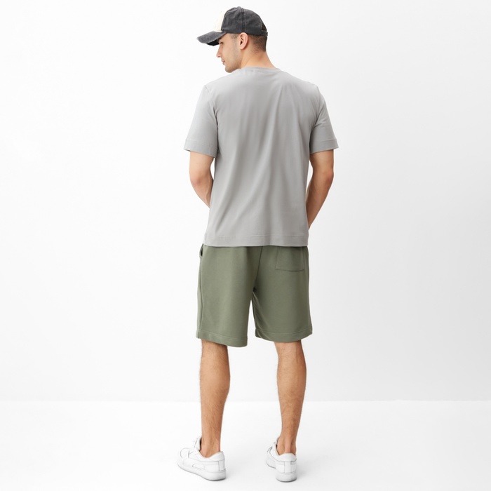 Мужские летние шорты в стильном хаки отлично подходят для активного отдыха и повседневной носки в теплое время года. Эта модель выполнена из гладкого футера, который сочетает комфорт и практичность. Размер 54 подходит для мужчин ростом 180–185 см, ценящих свободный крой и универсальный стиль.