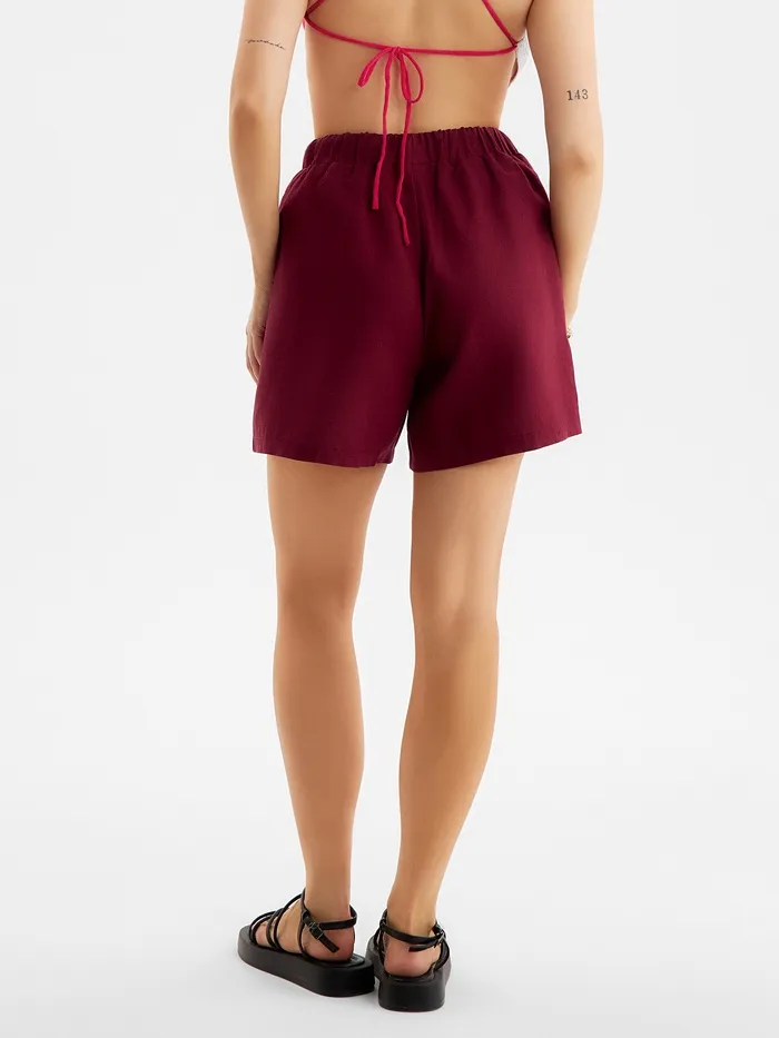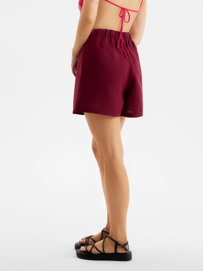 Шорты женские на резинке льняные MINAKU: Safari, бордовые, размер 46 — Характеристики