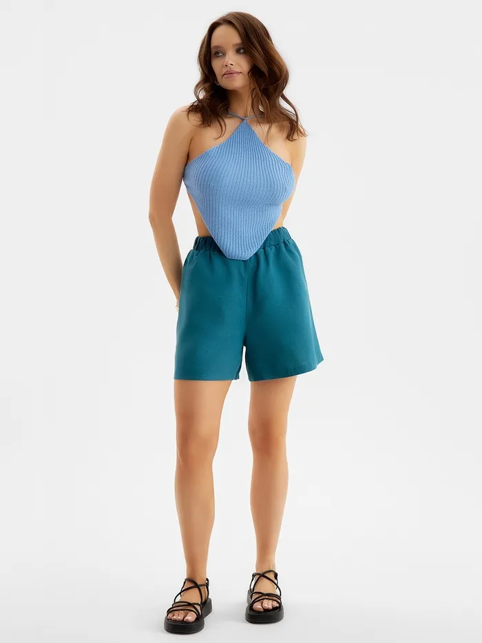 Шорты женские на резинке льняные MINAKU: Safari, изумрудные, размер 46 — Характеристики