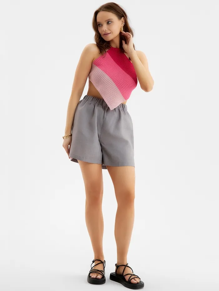 Шорты женские на резинке льняные MINAKU: Safari, серые, размер 46 — Характеристики