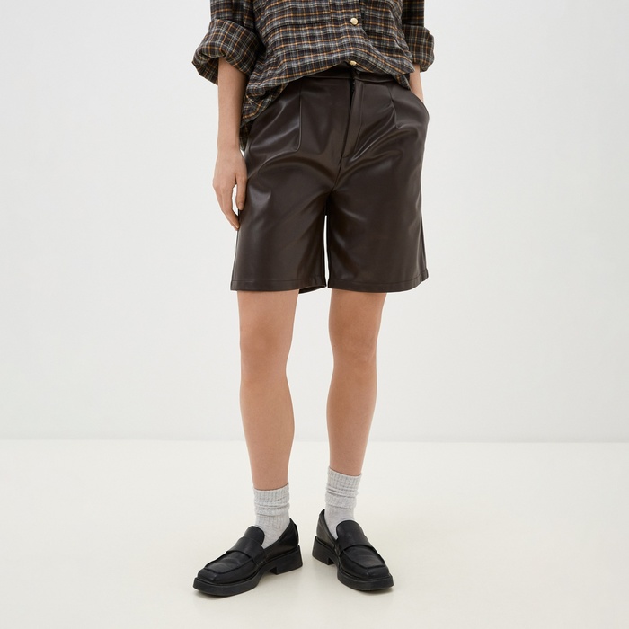 Шорты женские кожаные MIST Basе, размер 48, коричневые