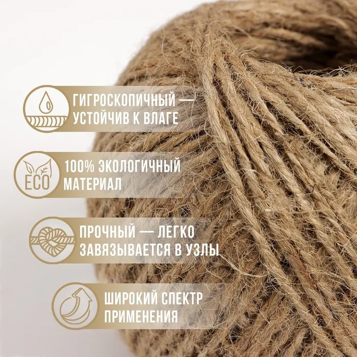 Шпагат джутовый Доляна, двухниточный, 1,12 текс, 100 м — Характеристики