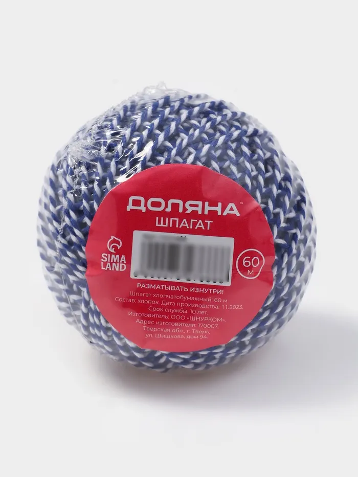 Шпагат хлопчатобумажный, 60 м, цвет МИКС — Характеристики