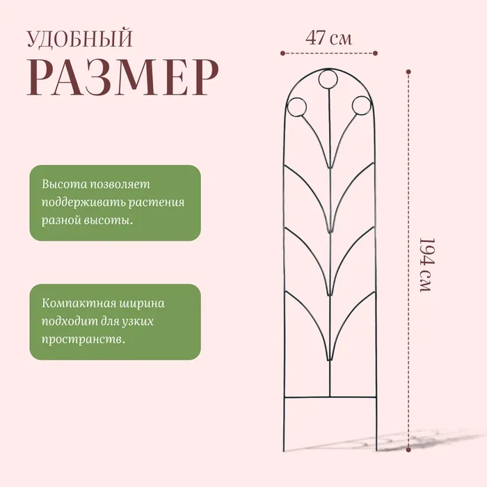 - Высота 194 см позволяет поддерживать растения разной высоты.