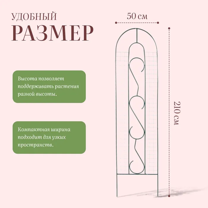 - Высота 200 см позволяет поддерживать растения разной высоты.