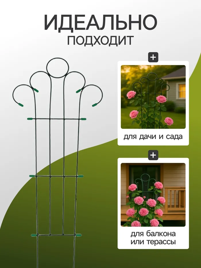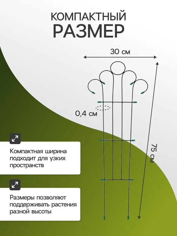 Шпалера, 75×30×0.4 см, металл, зелёная, «Мини-декор» — Характеристики