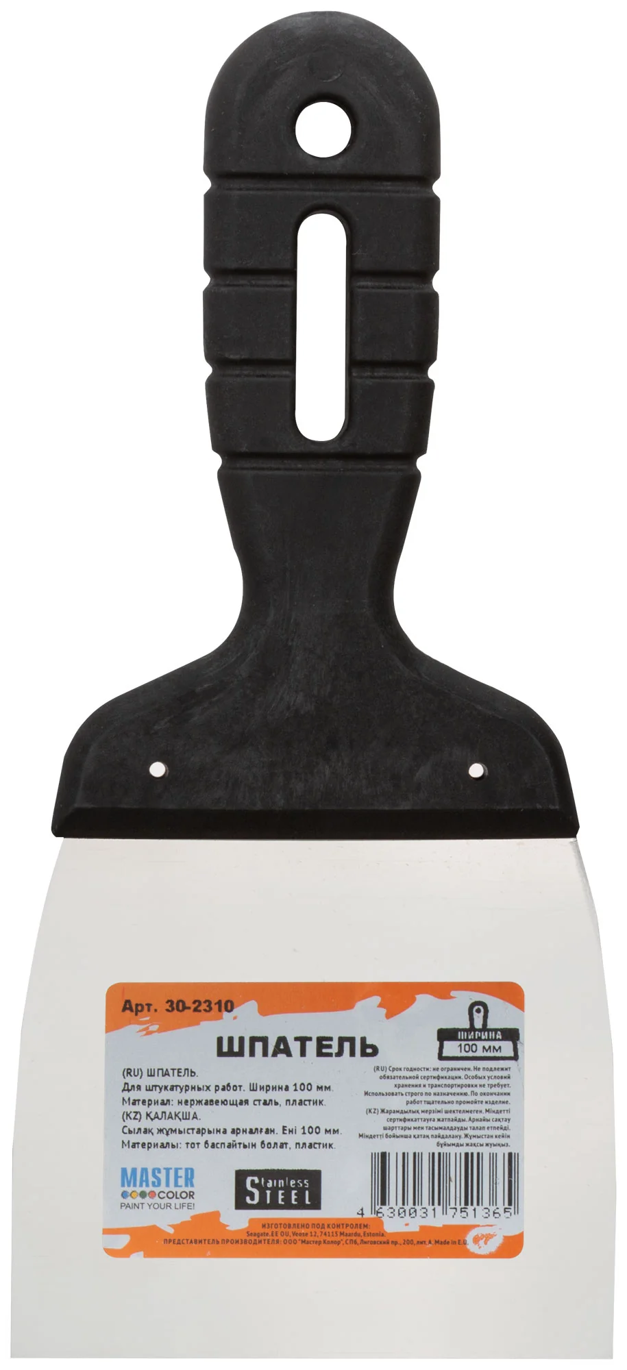 Шпатель 100 мм из нержавеющей стали с пластиковой ручкой для штукатурных работ