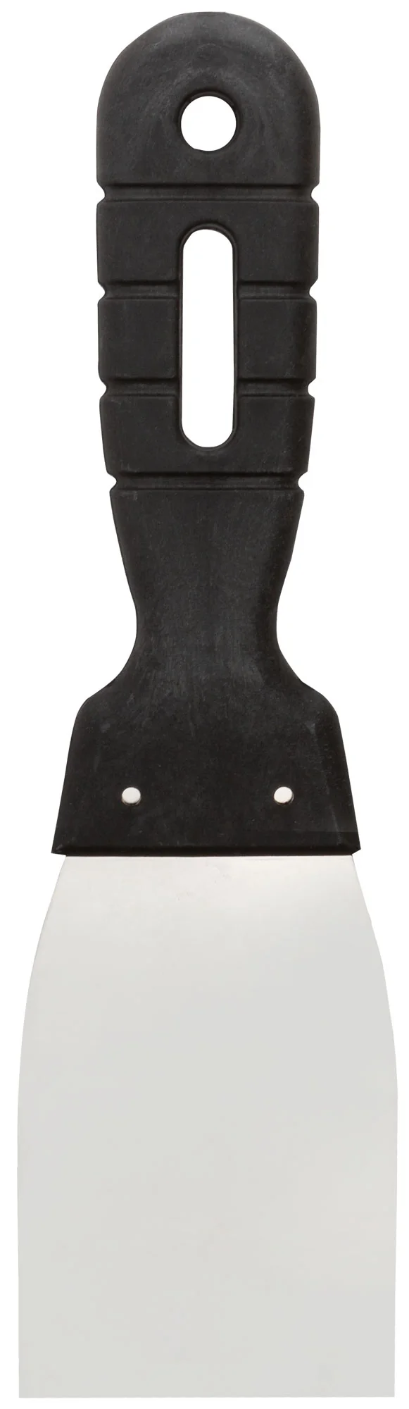 Преимущества шпателя заключаются в его легкости и прочности. Сделанный из нержавеющей стали, он не подвержен коррозии и хорошо переносит воздействие агрессивных строительных материалов. Пластиковая ручка устойчива к механическим повреждениям и химическим веществам.