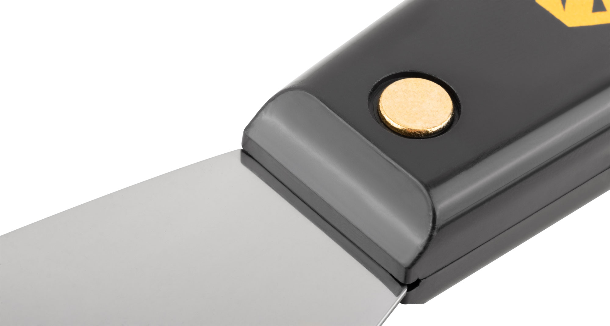 Шпатель оснащен лезвием из полированной усиленной стали с твердостью HRC 72-78 и толщиной 1 мм, что обеспечивает долговечность и эффективность. Пластиковая ручка с металлическим бойком обеспечивает удобство и надежность при использовании.