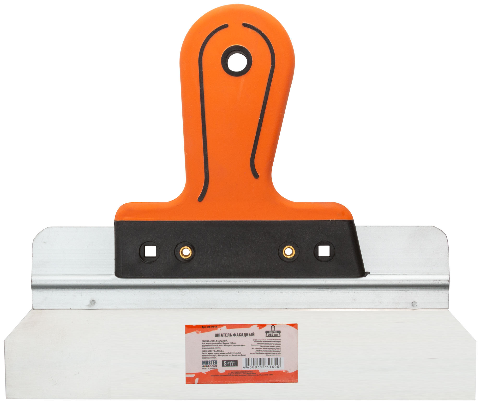 Фасадный шпатель 250 мм из нержавеющей стали с 2К-ручкой для штукатурных работ