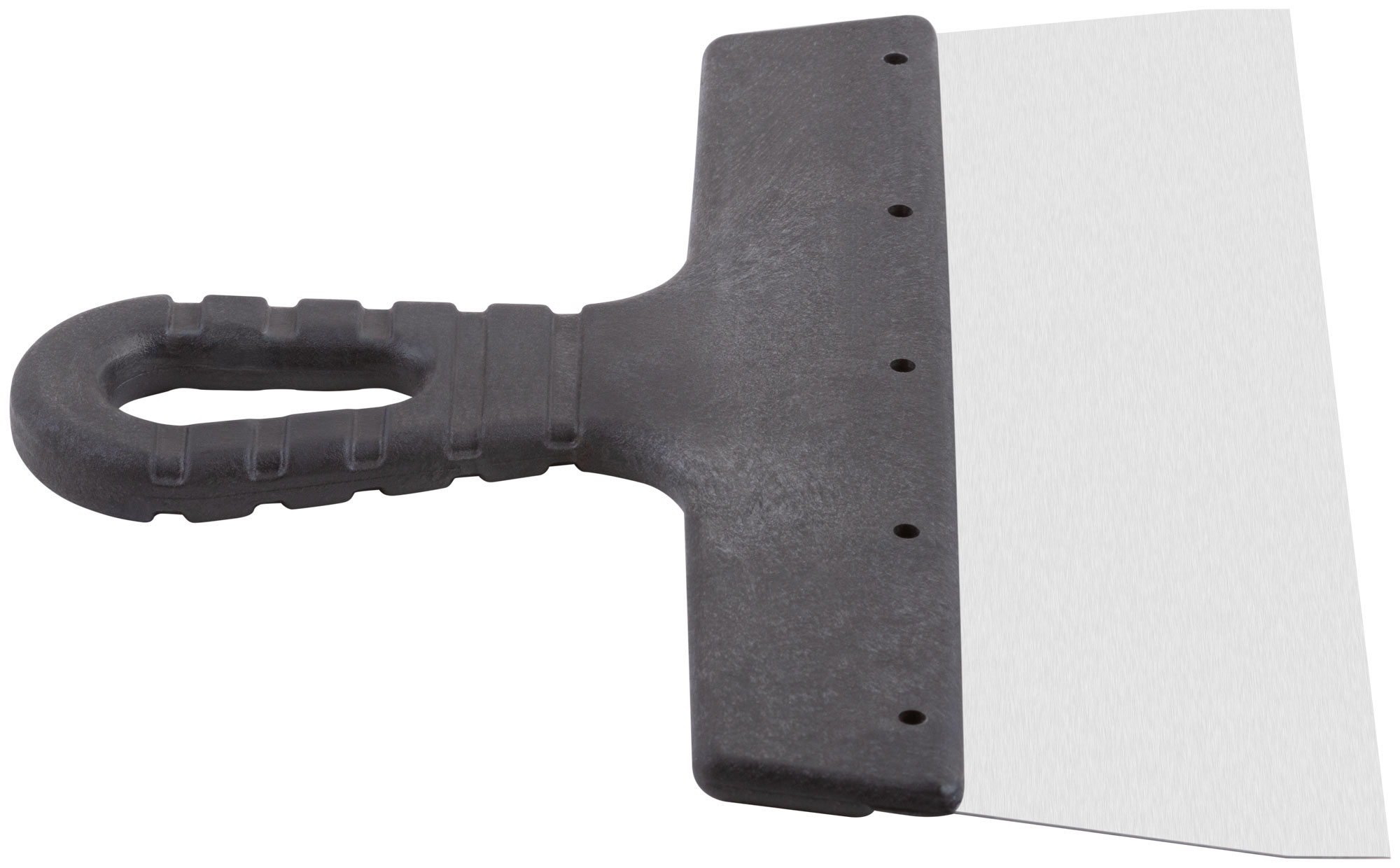 Используйте шпатель фасадный нержавеющий 250 мм для обработки больших поверхностей. Этот инструмент идеально подходит для нанесения и выравнивания штукатурки или шпаклевки на фасадах зданий и внутренних стенах.