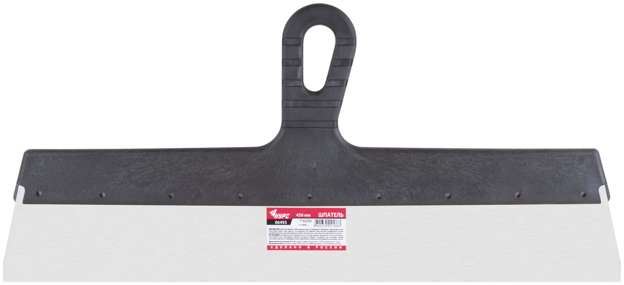 Шпатель фасадный нержавеющий 450 мм от бренда КУРС идеален для отделочных работ на крупных фасадных поверхностях. Этот инструмент позволяет равномерно распределять смесь, обеспечивая ровное покрытие без дефектов.