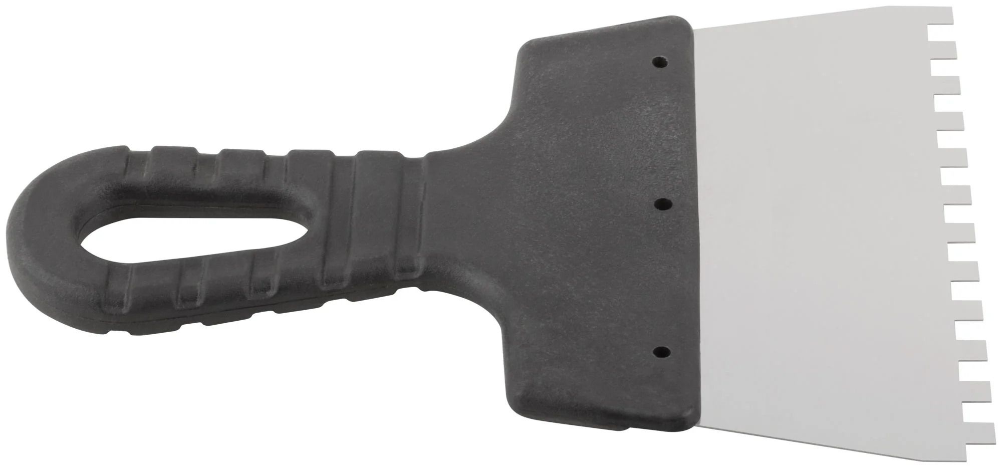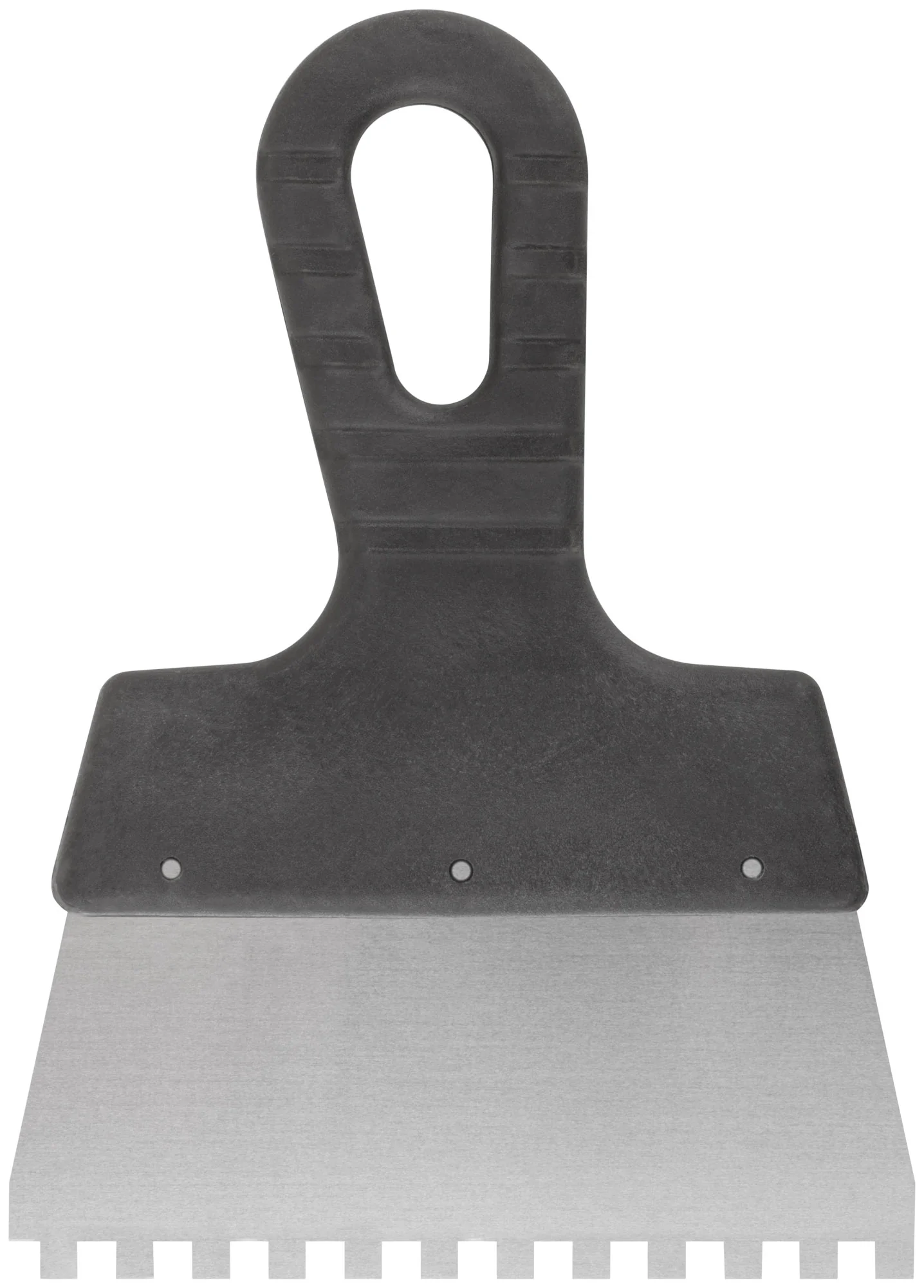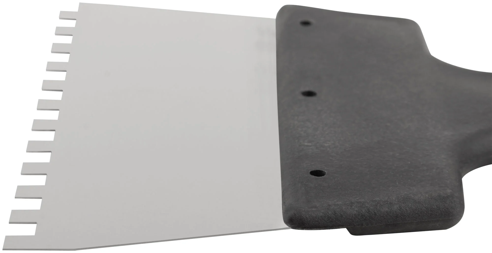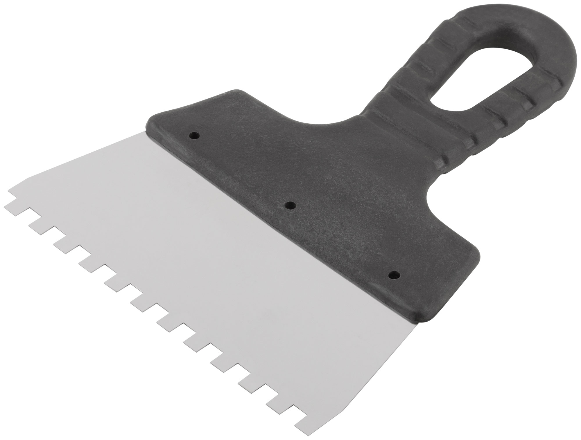 Идеален для нанесения клеевых составов и растворов на большие поверхности. Этот инструмент незаменим при укладке плитки или утеплительных материалов, где требуется ровный слой материала. Позволяет легко и быстро справиться с задачей благодаря зубцам 6 мм, обеспечивающим точное дозирование смеси.