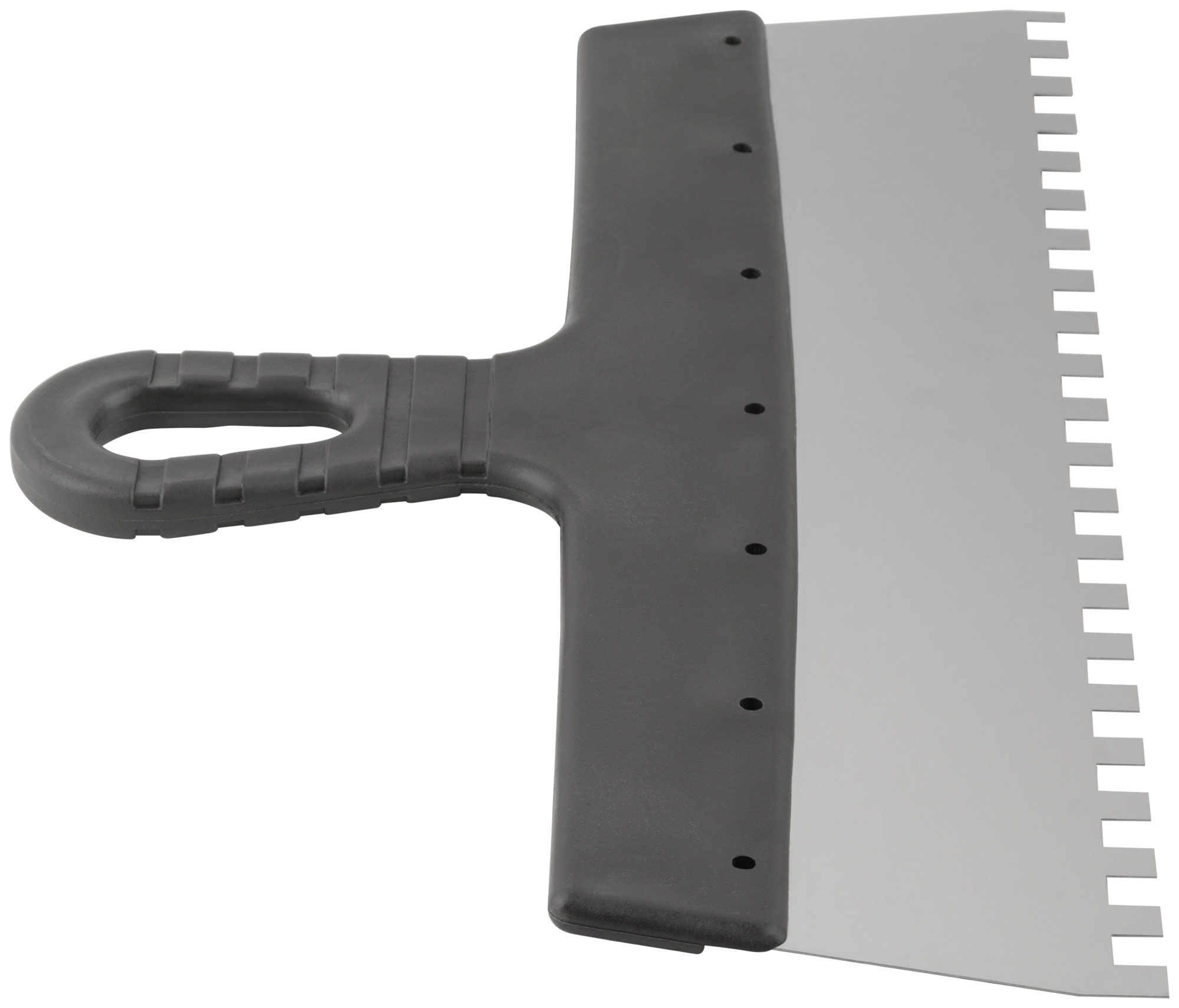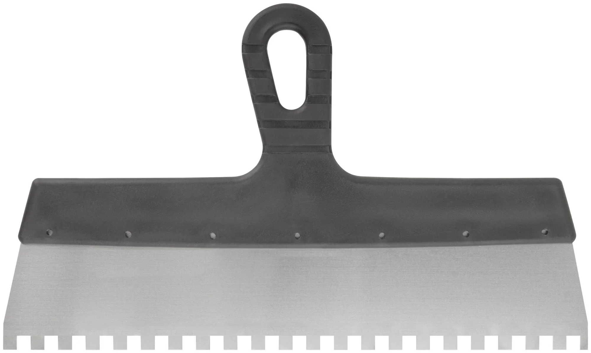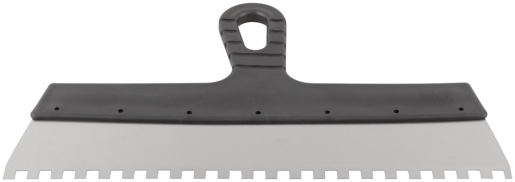 Идеален для нанесения клеевых смесей и других материалов на крупные фасадные поверхности. Благодаря зубчатому краю размером 8 мм обеспечивается равномерное распределение и надежное сцепление с основой.