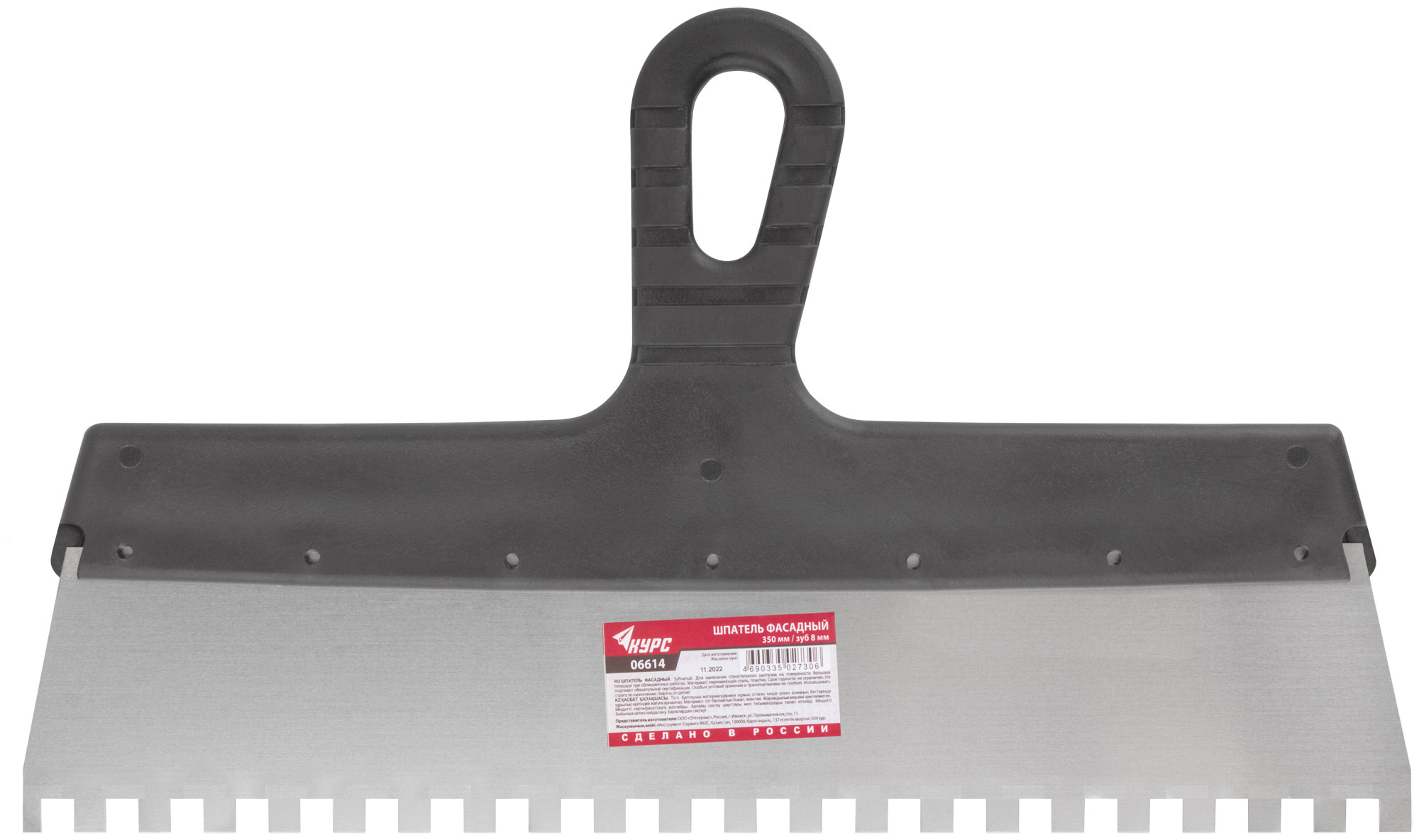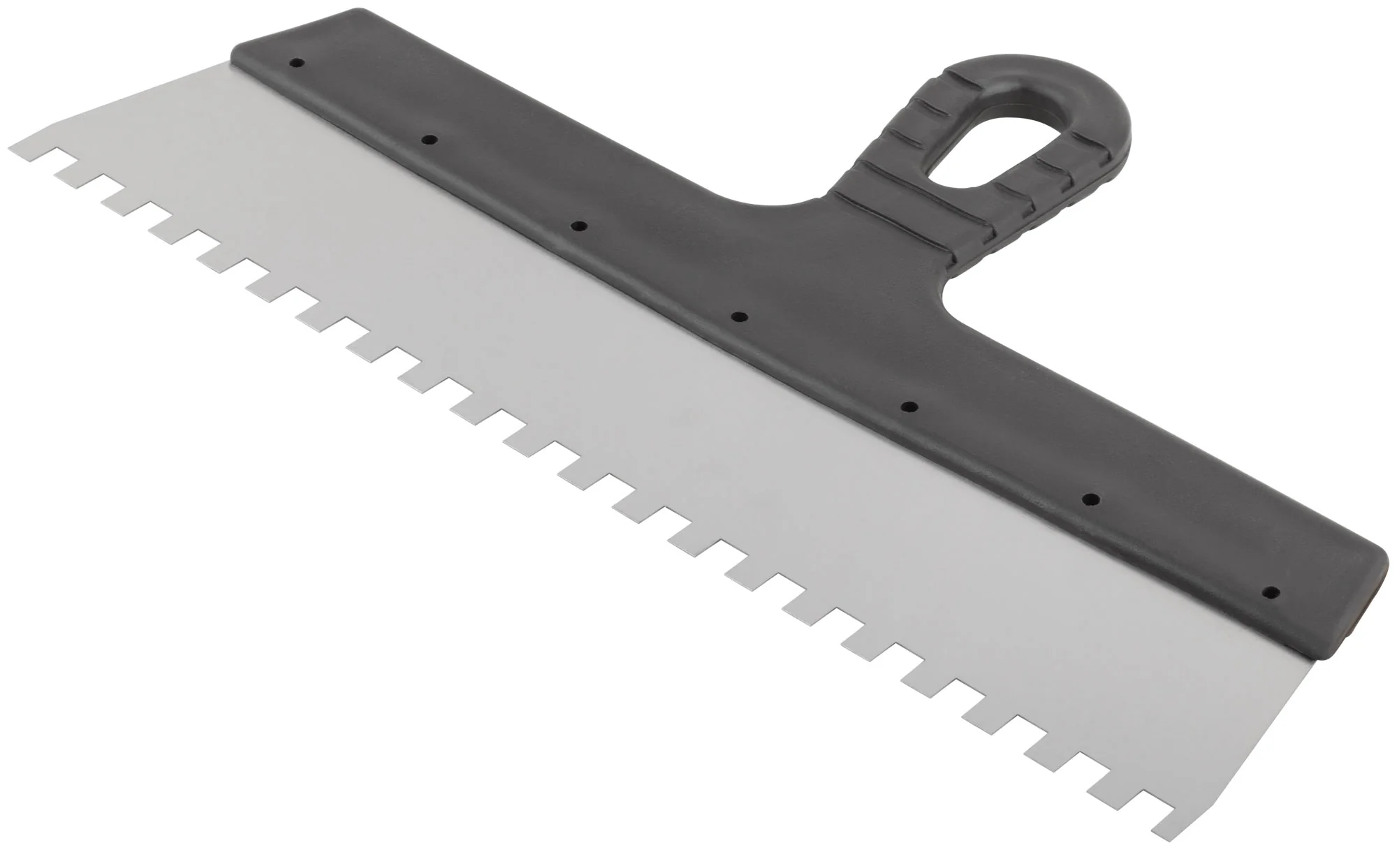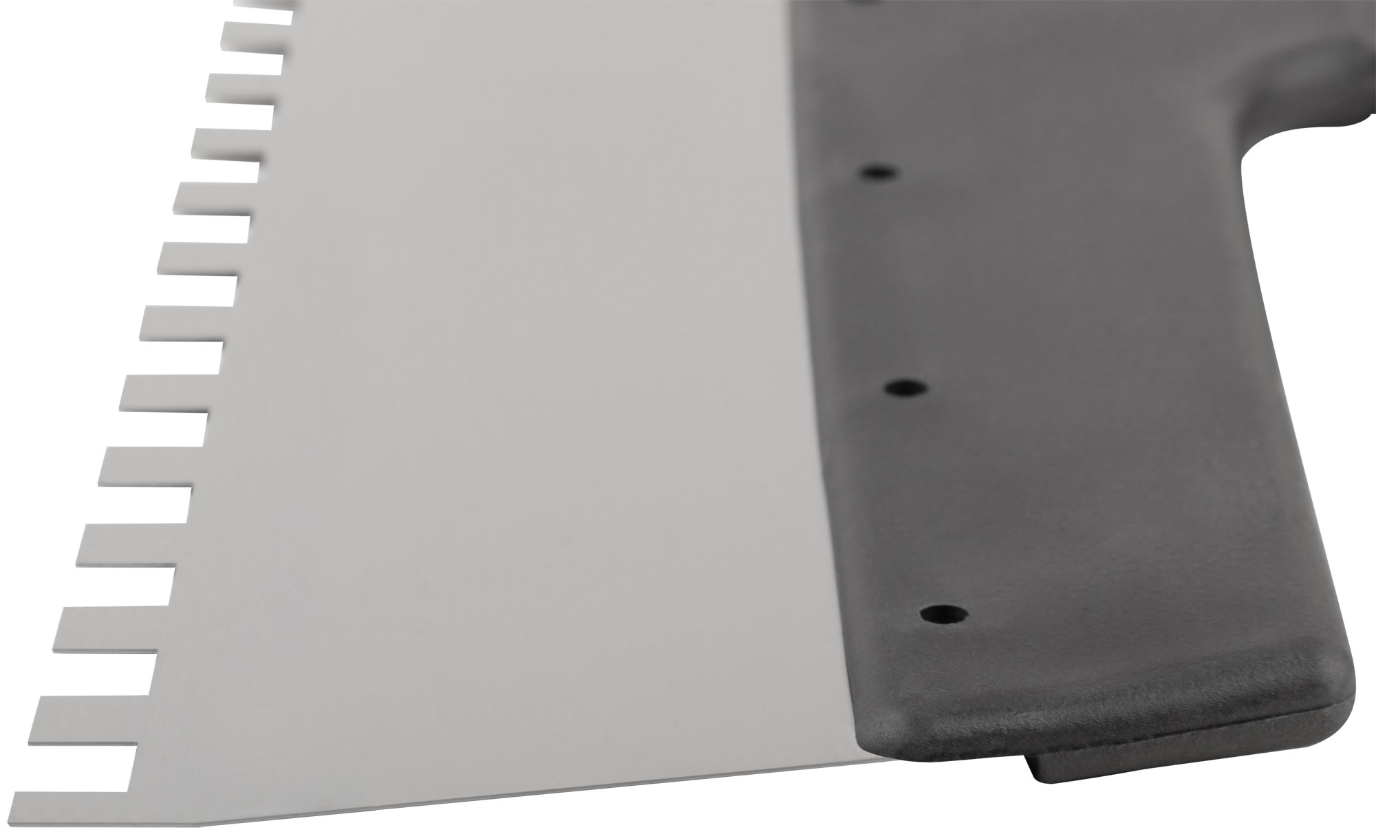 Идеален для нанесения клеевых смесей и других материалов на крупные фасадные поверхности. Благодаря зубчатому краю размером 8 мм обеспечивается равномерное распределение и надежное сцепление с основой.