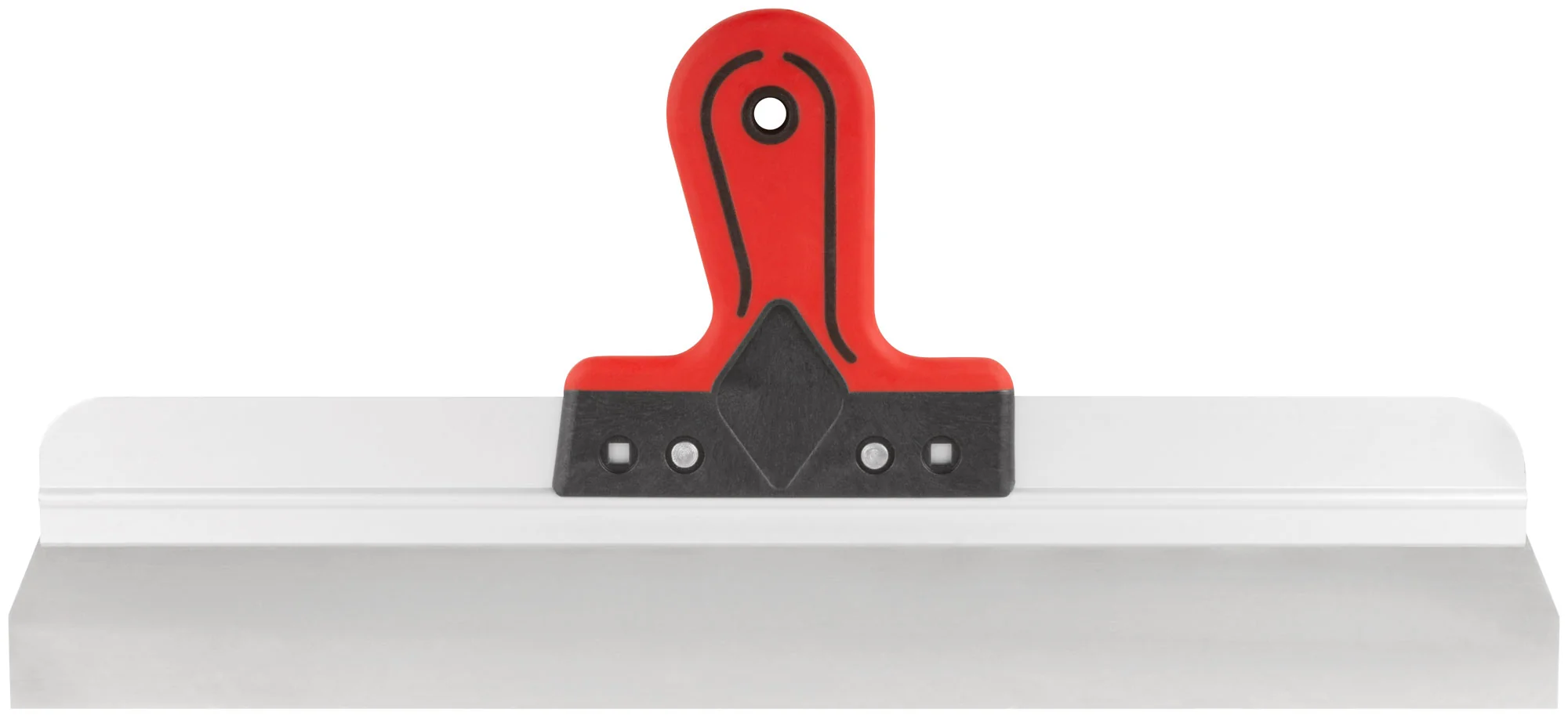 Шпатель изготовлен из нержавеющей стали, что гарантирует долговечность и устойчивость к коррозии. Прорезиненная ручка обеспечивает удобный и надежный хват, снижая усталость рук даже при продолжительной работе. Алюминиевое ребро жесткости усиливает конструкцию, предотвращая деформацию инструмента.