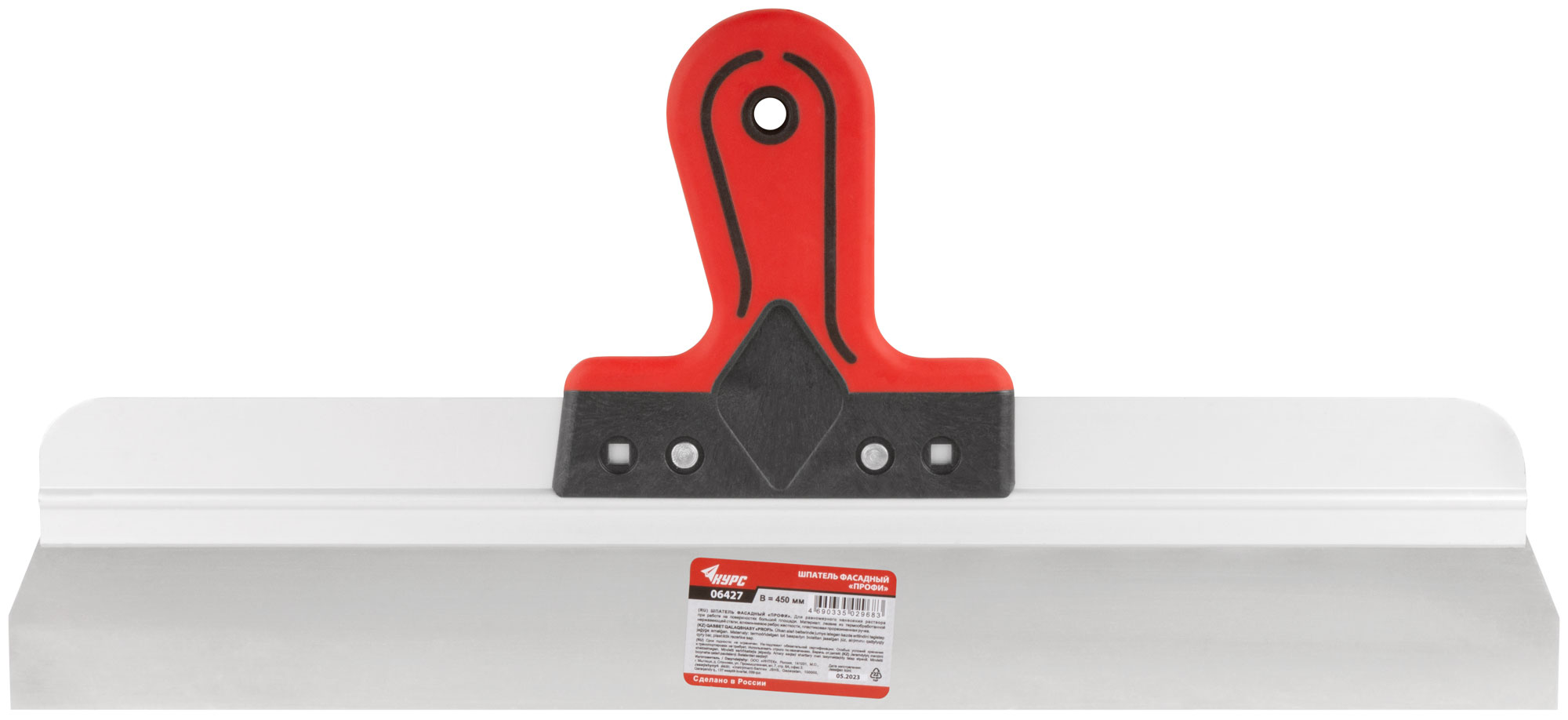 Шпатель фасадный 450 мм из нержавеющей стали с прорезиненной ручкой