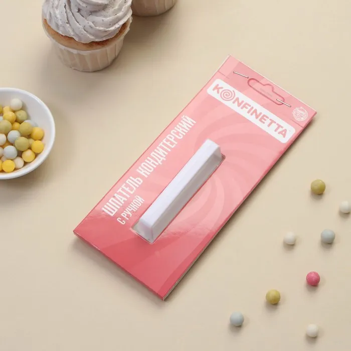 Шпатель кондитерский KONFINETTA, 15×8×2.5 см, с ручкой, белый занимает не последнее место в рейтинге профессионального кухонного инвентаря. Однако далеко не каждая хозяйка догадывается о его предназначении. Раскрываем бытовую тайну – практичный инструмент создан для эффективного выравнивания жидкого теста или крема.