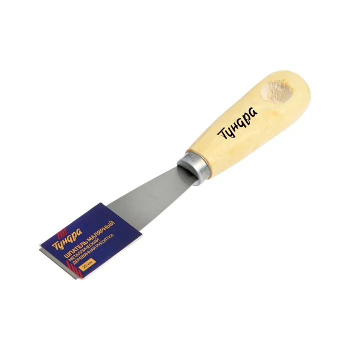 Шпатель малярный ТУНДРА, металлический, деревянная рукоятка, 25 мм — Характеристики