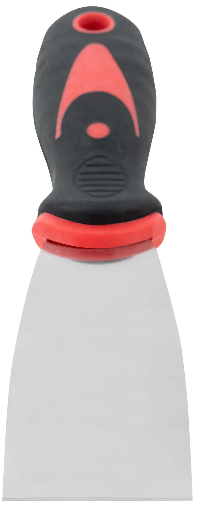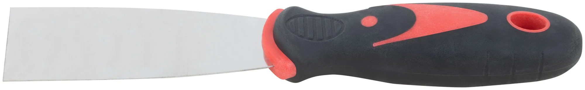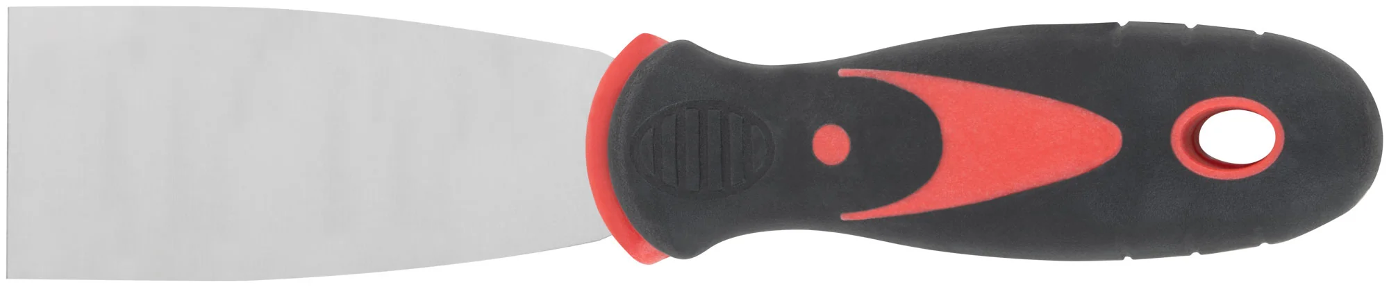 Изготовлен из нержавеющей стали, шпатель обеспечивает долговечность и устойчивость к коррозии, что особенно важно при работе с влажными материалами. Прорезиненная ручка обеспечивает комфортный захват и предотвращает скольжение даже в условиях повышенной влажности.