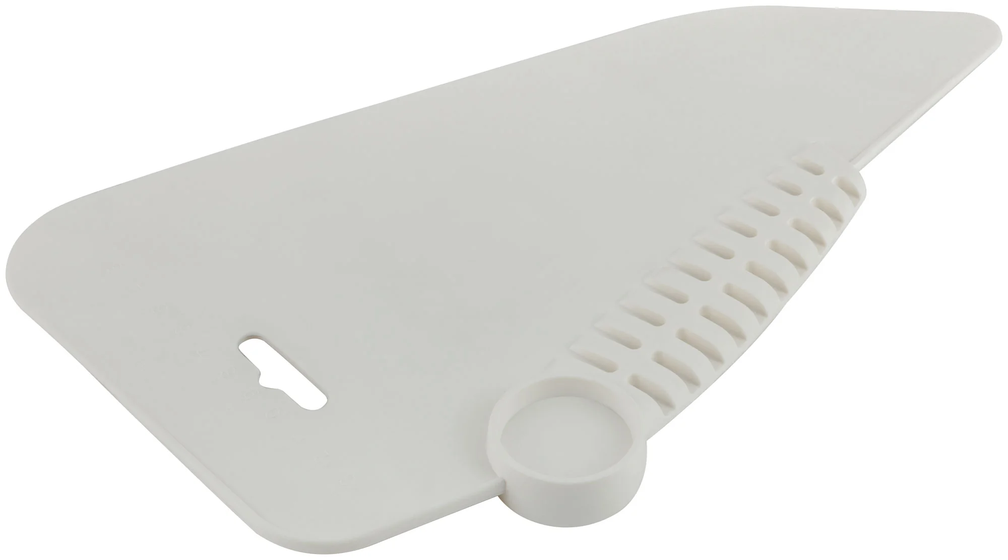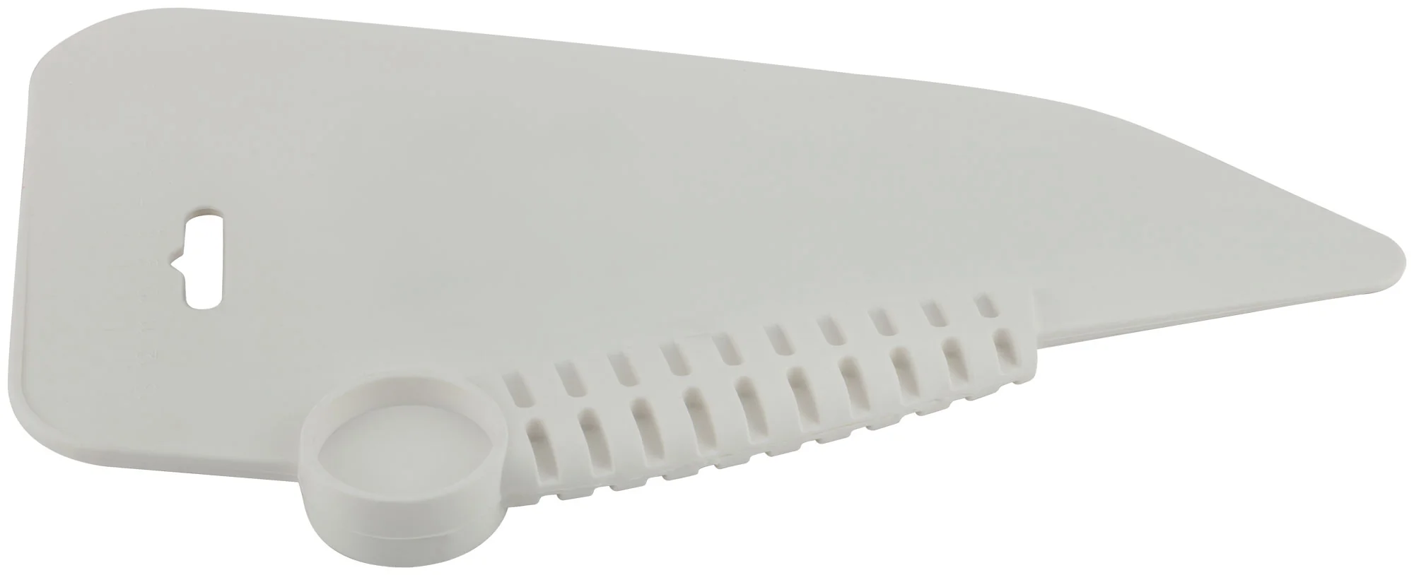 Изготовленный из качественного пластика, шпатель обладает легкостью и прочностью, что делает его удобным для длительной работы. Габариты 275x155x15 мм позволяют комфортно держать инструмент в руке, а его белый цвет способствует визуальному контролю за процессом.
