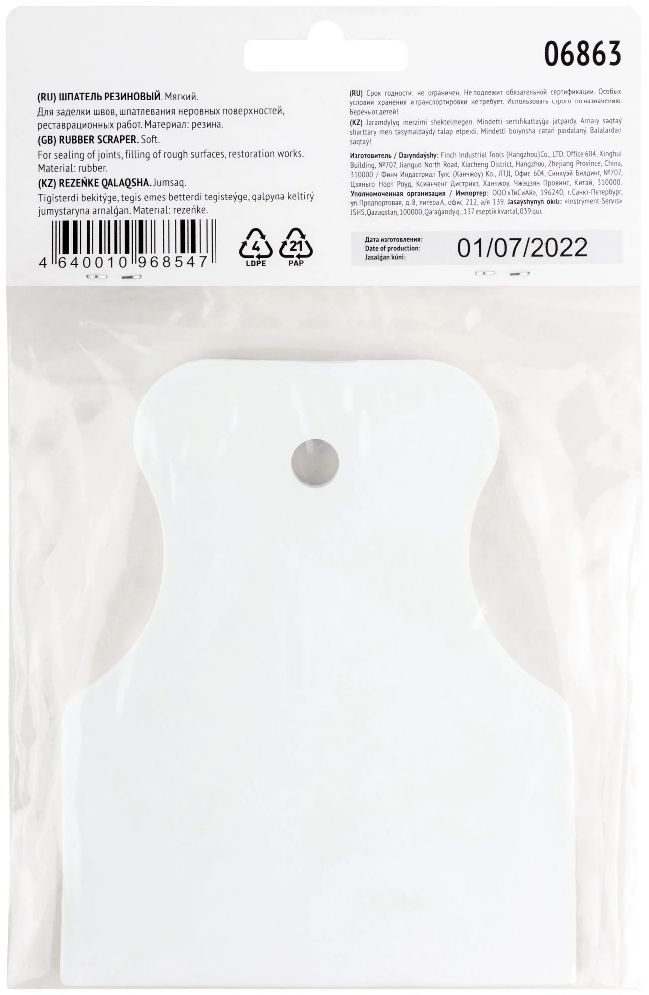 Изготовленный из качественной резины, шпатель обеспечивает гибкость и удобство в работе. Его размеры позволяют работать даже в труднодоступных местах, а лёгкий вес облегчает длительное использование без усталости.