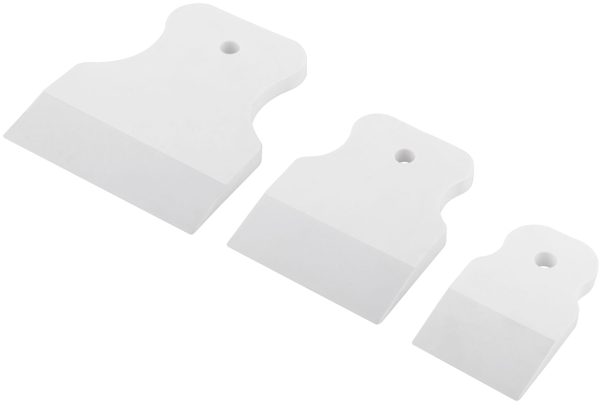 Шпатели изготовлены из прочной резины, которая обеспечивает их долговечность и износостойкость. Компактные размеры (170x100x20 мм) и легкий вес (всего 120 г) делают их удобными для использования в труднодоступных местах.