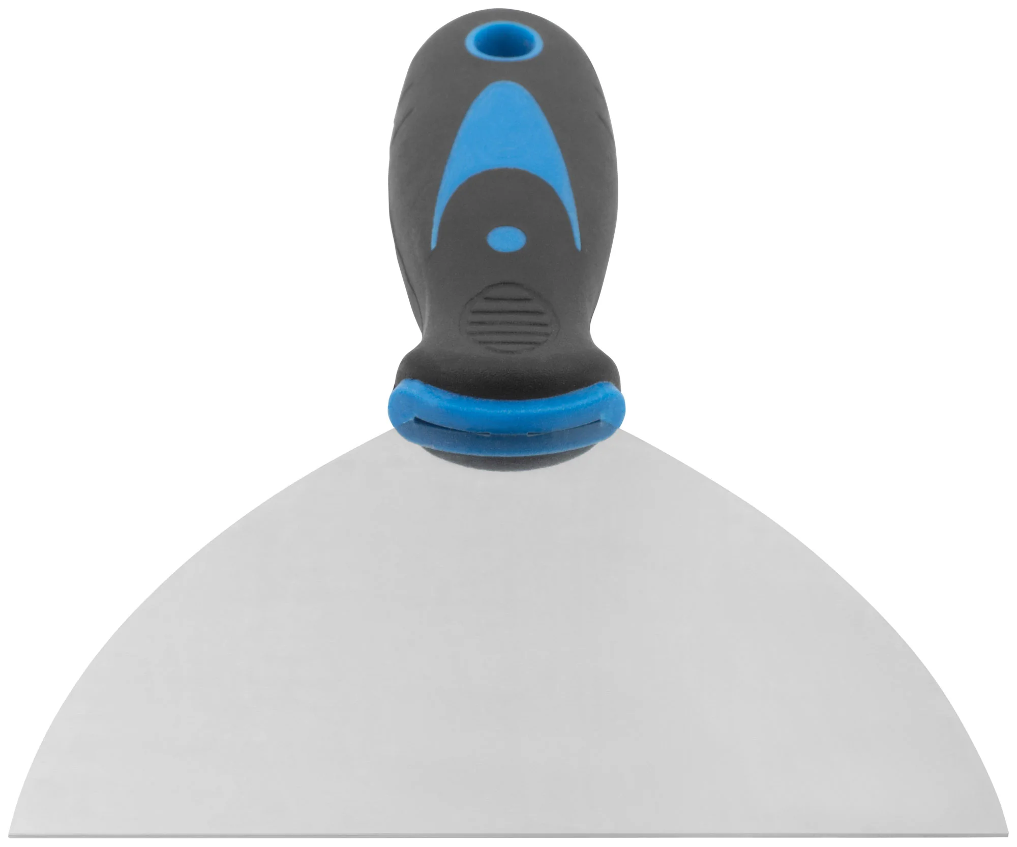 Изготовлен из прочной нержавеющей стали, этот шпатель обеспечивает долговечность и устойчивость к коррозии. Комбинированная ручка с прорезиненной поверхностью делает его использование комфортным и безопасным, предотвращая скольжение в процессе работы.