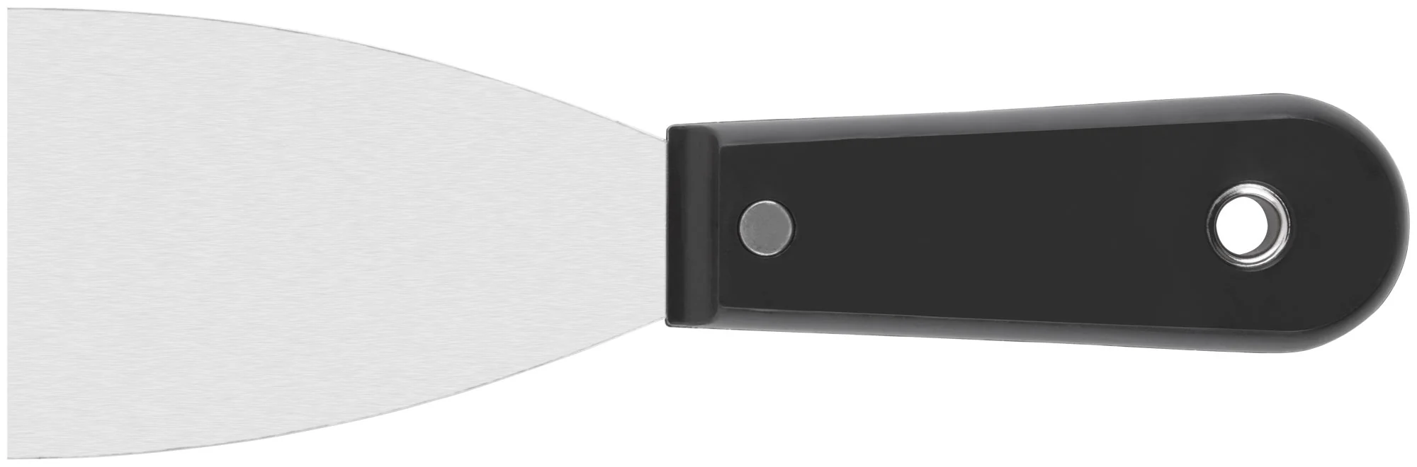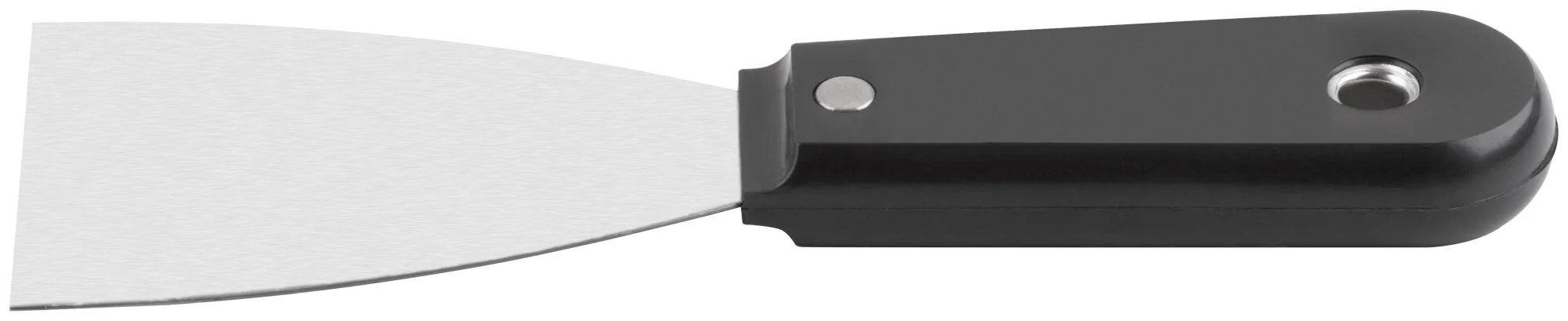 Шпатель FIT с полированным стальным лезвием и пластиковой ручкой диаметром 63 мм — идеальный инструмент для заделки швов и трещин. Незаменим при проведении отделочных работ, где требуется точность и аккуратность.